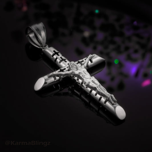 Sterling Silver Crucifix Tube Cross Pendant Necklace