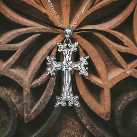 Sterling Silver Armenian Reversible Cross Pendant Necklace