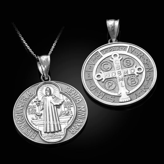 Sterling Silver St. Benedict Reversible Medal Cross Pendant Necklace