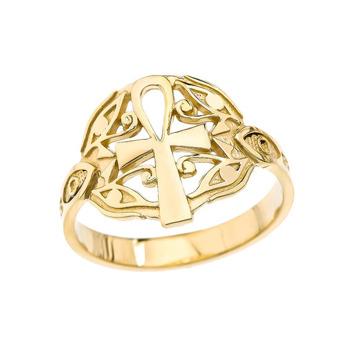 Gold Egyptian Ankh Womens Ring