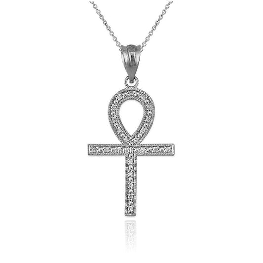 Gold Egyptian Ankh Cross Diamond Pendant Necklace (yellow, white, rose gold, 10k, 14k)