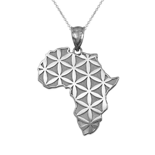 Gold Africa Map Flower of Life Pendant Necklace (10K, 14K, yellow, white, rose gold)
