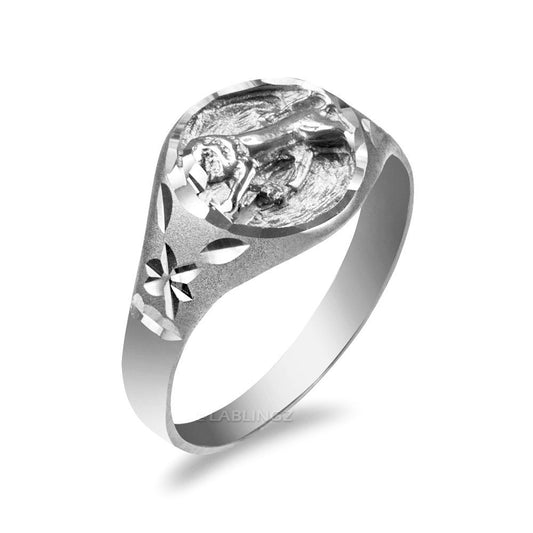 Sterling Silver Leo Satin DC Ladies Zodiac Sign Ring