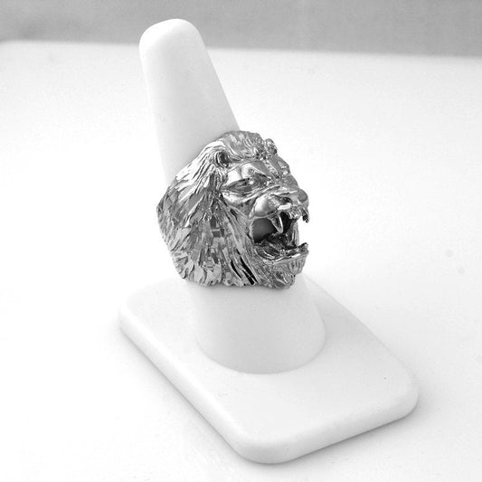 Sterling Silver Lion Ring - Silver Lion Head Mens Ring - Leo Ring