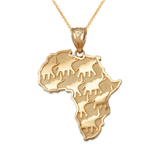 Gold AFRICA Pendant Necklace (10K, 14K, yellow, white, rose gold)