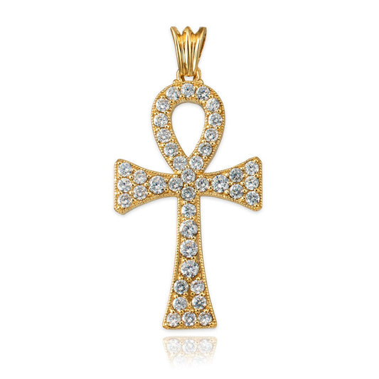 Diamond Studded Solid Gold Egyptian Ankh Cross Pendant (10k, 14k, yellow, white, rose gold)