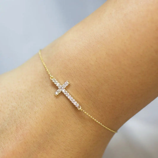14K Gold Diamond Studded Cross Bracelet (yellow, white, rose gold)