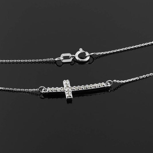14K Gold Curved Sideways Cross Diamond Necklace (yellow, white, rose gold)