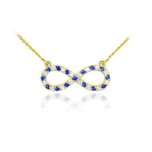 14K Gold Diamond and Sapphire Infinity Necklace (yellow, white, rose gold)