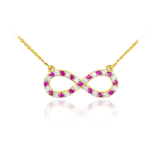 14K Gold Diamond and Ruby Infinity Necklace (yellow, white, rose gold)
