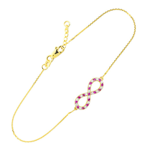 14K Gold Diamond and Ruby Infinity Bracelet (yellow, white, rose gold)