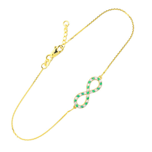 14K Gold Diamond and Emerald Infinity Bracelet (yellow, white, rose gold)