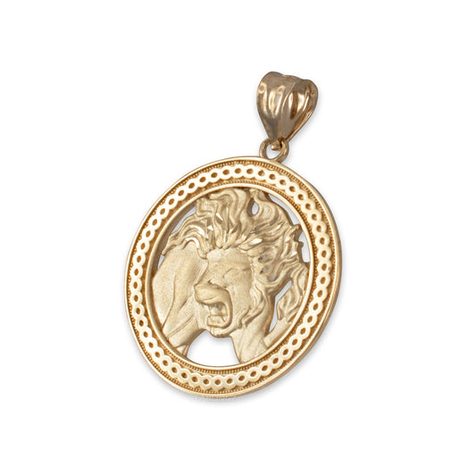 Gold Lion Face Satin DC Leo Pendant S/L (yellow, white, rose gold, 10k, 14k)