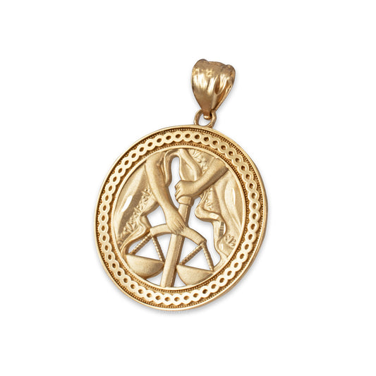 Gold Libra Zodiac Sign Medallion Pendant Necklace (yellow, white, rose, 10K, 14K)