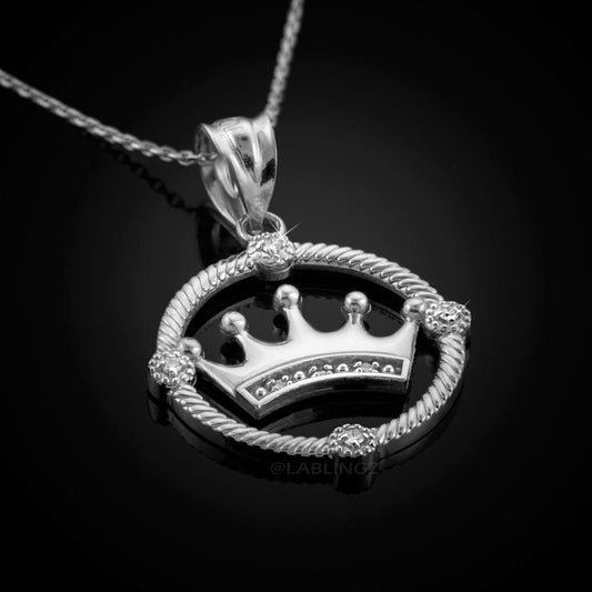 Gold Quinceanera Crown Diamond Pendant Necklace (10k, 14k, yellow, white, rose gold)