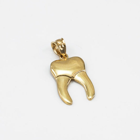 Polished Gold Molar Tooth Dental Charm Necklace (10K, 14K, yellow, white, rose gold)