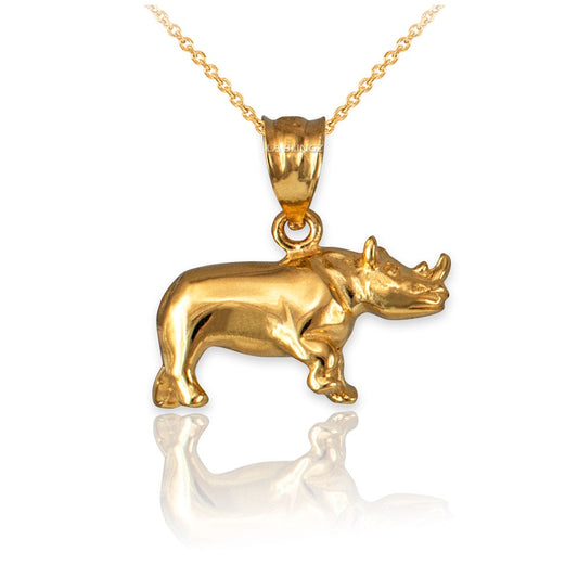 Polished Gold Rhino Charm Necklace (10K, 14K, yellow, white, rose gold)