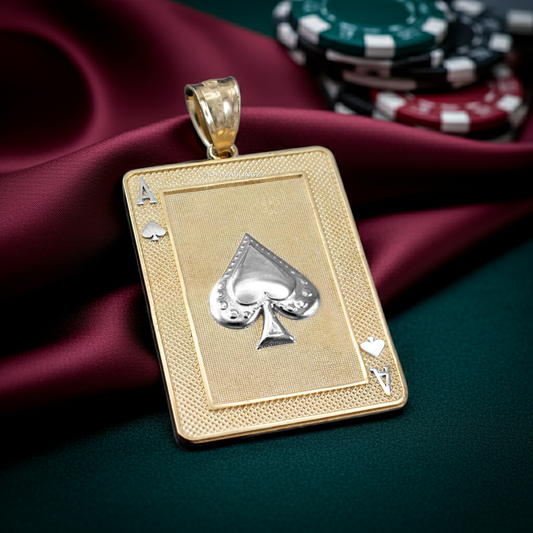 Gold Ace of Spades Poker Card Pendant (yellow, white, rose, 2-tone, 10K, 14K)