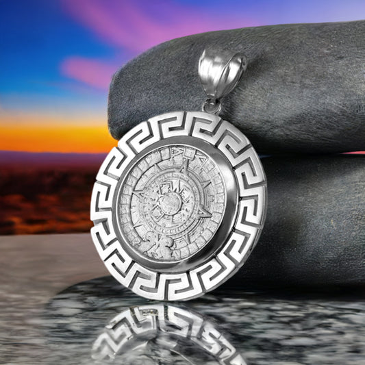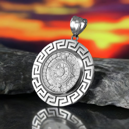 Sterling Silver Aztec Mayan Sun Stone Calendar Pendant – Ancient Symbol Jewelry