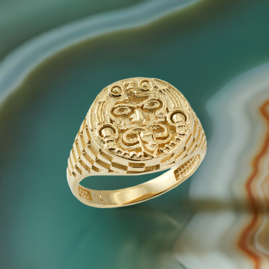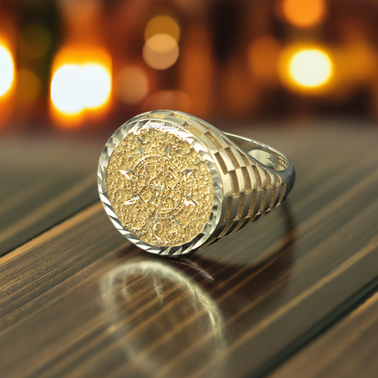 Gold Aztec Mayan Sun Calendar DC Unisex Signet Ring