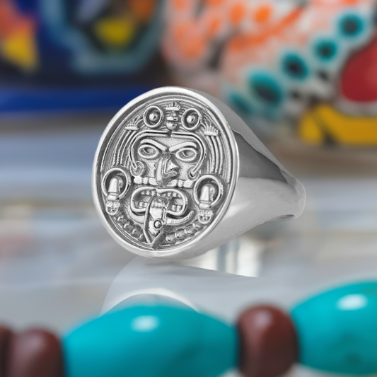 Gold Aztec Warrior Mayan Sun Statement Ring