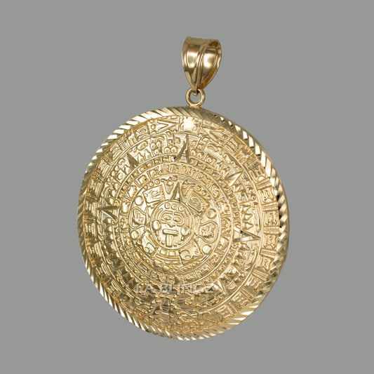 10K Gold Aztec Mayan Sun Calendar Pendant (3 sizes, yellow, white, rose gold)