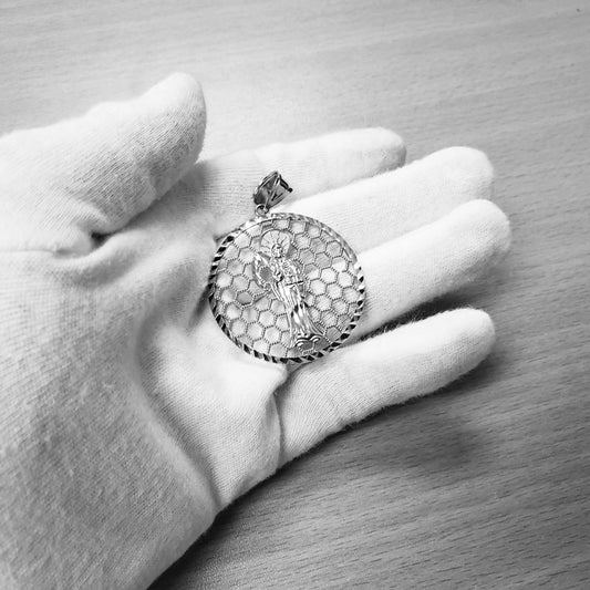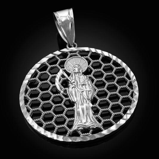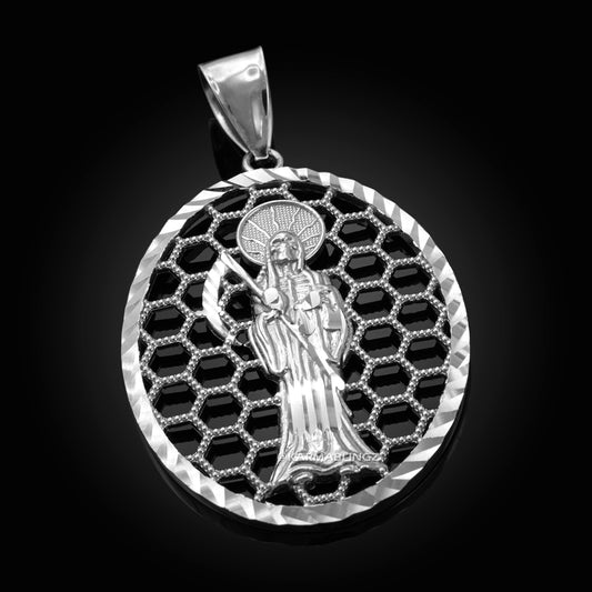 Sterling Silver Santa Muerte Round Honeycomb DC Pendant