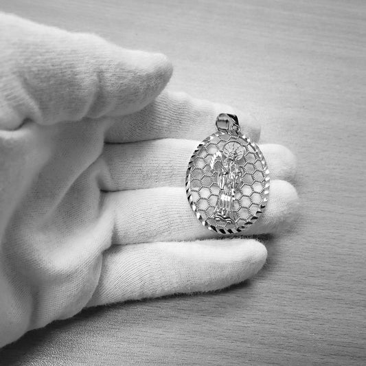 Sterling Silver Santa Muerte Oval Honeycomb DC Pendant