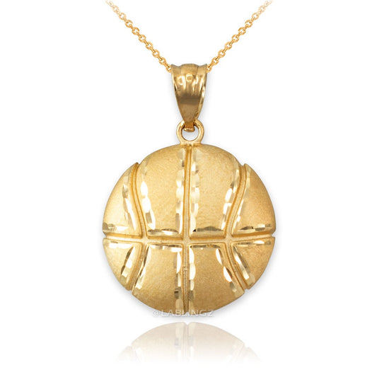 Gold Basketball Satin DC Pendant Necklace (10K, 14K, yellow, white, rose gold)