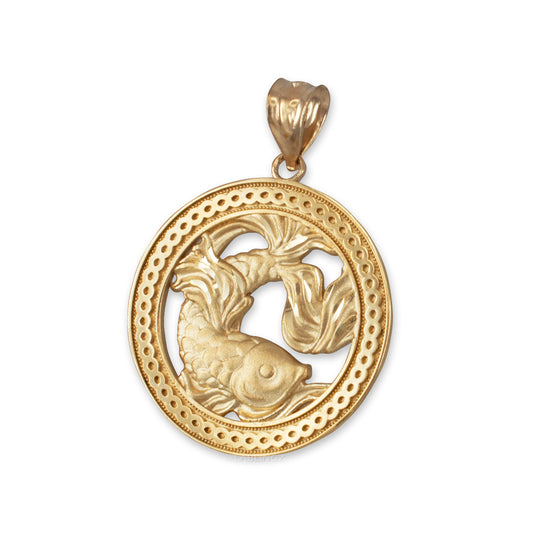 Gold Pisces Zodiac Sign Medallion Pendant Necklace (yellow, white, rose, 10K, 14K)