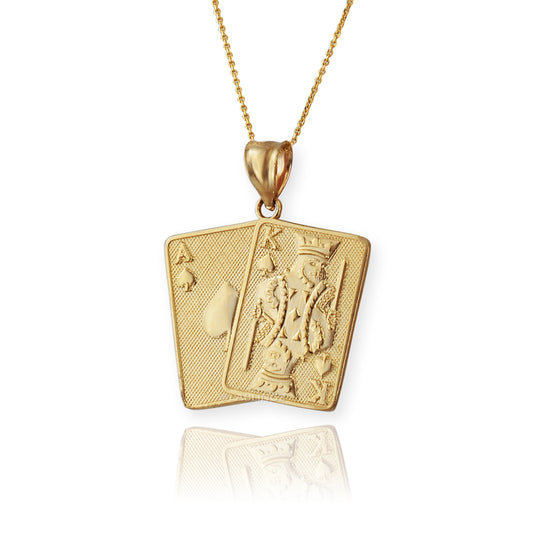 Gold Ace and King of Spades Playing Cards Pendant Necklace (yellow, white, rose, 2-tone, 10k, 14k)