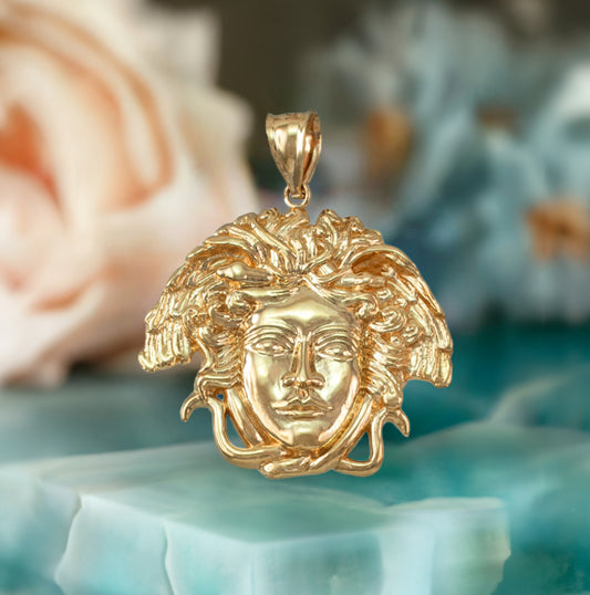 Yellow Gold Medusa Charm Pendant Necklace (10k/14k)