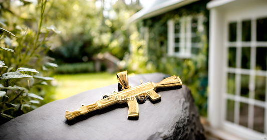 Solid Gold AK-47 Rifle Gun DC Pendant (yellow, white, rose gold, 10k, 14k)