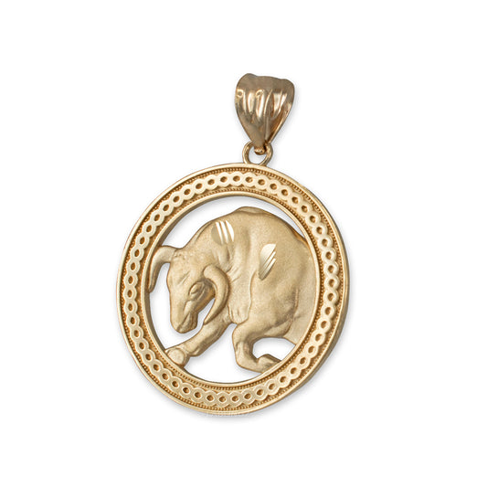 Gold Taurus Zodiac Sign Medallion Pendant Necklace (yellow, white, rose, 10K, 14K)