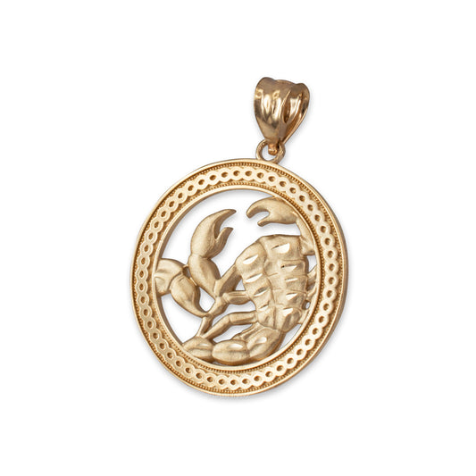 Gold Scorpio Zodiac Sign Medallion Pendant Necklace (yellow, white, rose, 10K, 14K)
