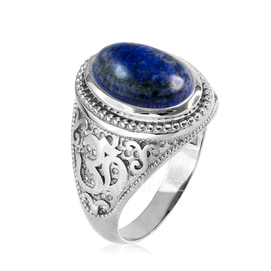 Sterling Silver Lapis Lazuli Om (Aum) Mantra Ring