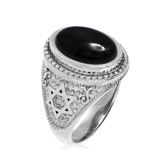 Sterling Silver Star of David Black Onyx Jewish Statement Ring