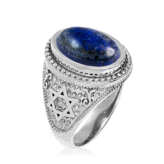 Sterling Silver Star of David Lapis Lazuli Oval Gemstone Jewish Statement Ring