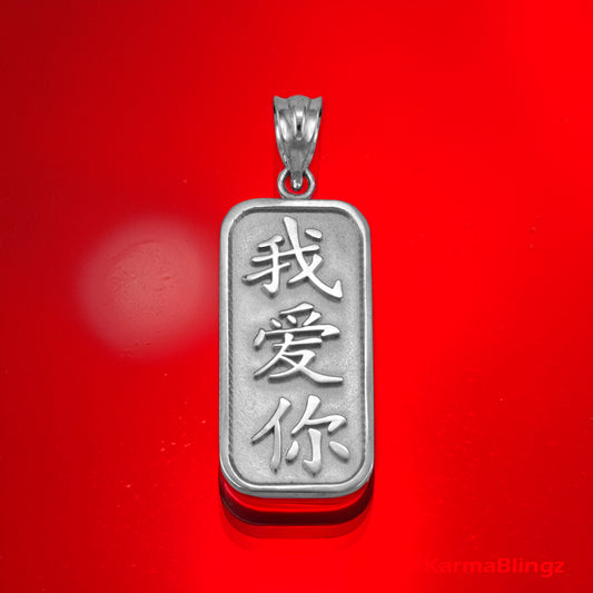 Gold Chinese "I Love You" Symbol Pendant Necklace (10K, 14K, yellow, white, rose gold)