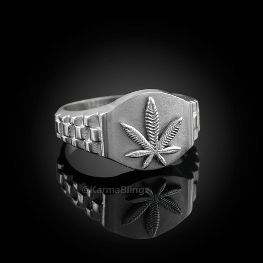 Sterling Silver Marijuana Weed Leaf Watchband Ring