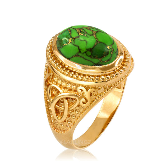 Yellow Gold Mens Celtic Green CZ Statement Ring (10K, 14K)