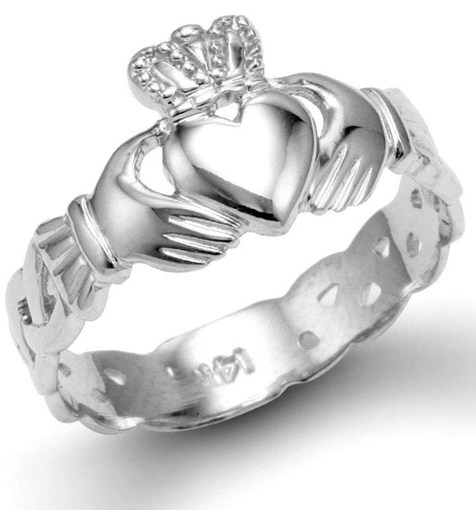 Ladies White Gold Celtic Band Irish Claddagh Ring