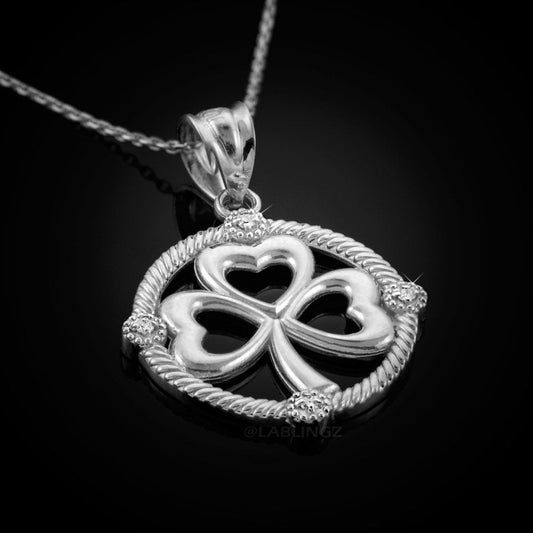 Gold Irish Shamrock Clover Diamond Pendant Necklace (10k, 14k, yellow, white, rose gold)