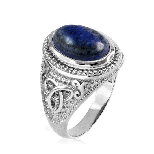 Sterling Silver Celtic Band Lapis Lazuli Gemstone Statement Ring