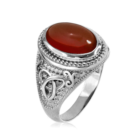 Sterling Silver Celtic Trinity Band Red Onyx Gemstone Ring