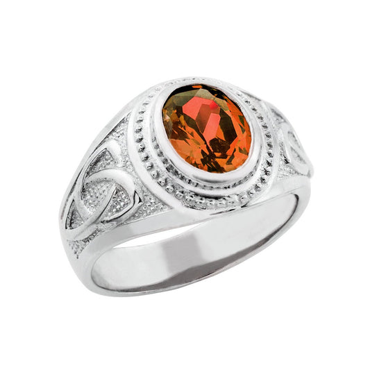 Silver Celtic Ring .925 Sterling Silver Citrine Yellow CZ Mens Celtic Ring