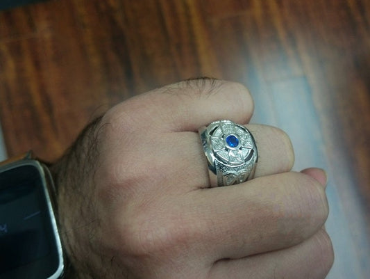 Silver Celtic Ring 925 Sterling Silver Sapphire Blue CZ Mens Celtic Ring