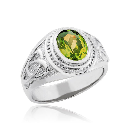 Silver Celtic Ring 925 Sterling Silver Peridot Green CZ Mens Celtic Ring