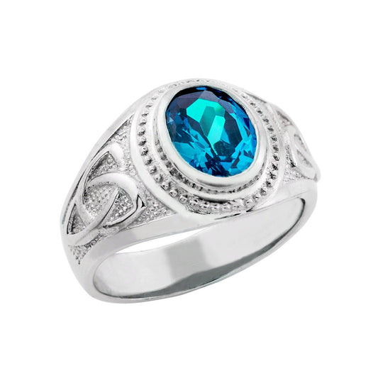 Silver Celtic Ring 925 Sterling Silver Blue Topaz CZ Mens Celtic Ring