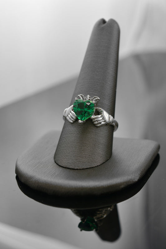 Sterling Silver Emerald Green CZ Claddagh Ring